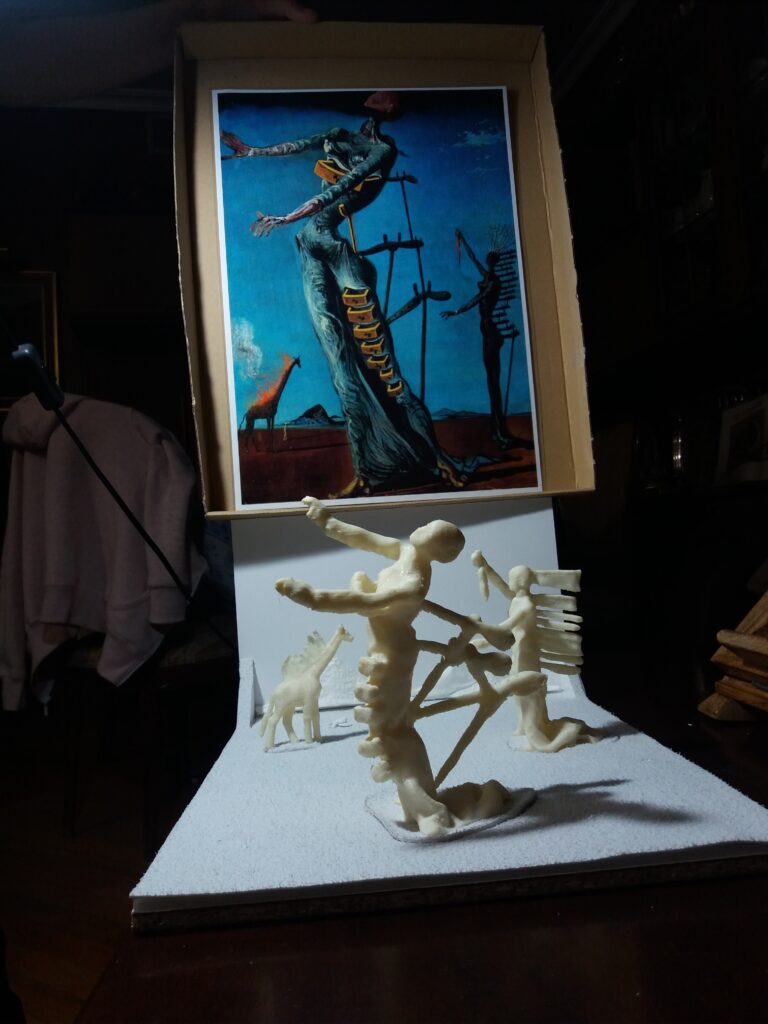 Además, las figuras humanas, con sus características cajones abiertos, son fácilmente reconocibles mediante el tacto, permitiendo a los usuarios explorar los conceptos de vulnerabilidad y exposición que Dalí asociaba con la naturaleza humana. La textura y forma de estos elementos invitan a una reflexión profunda sobre las tensiones entre lo interno y lo externo, lo oculto y lo revelado.